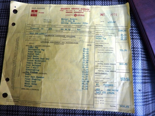 This is a one owner, all original 1969 GTX.  The odometer shows the actual miles of 28,224. The owner has all of the documentation on the vehicle including the dealer invoice.  He has all the original wheels, tires and hub caps which came with the car.  It is powered by 440ci/375hp, 4BBL, automatic transmission with posi and dual exhaust.  Options include power steering, power brakes and tilt driverside seat 6-way LT bucket.