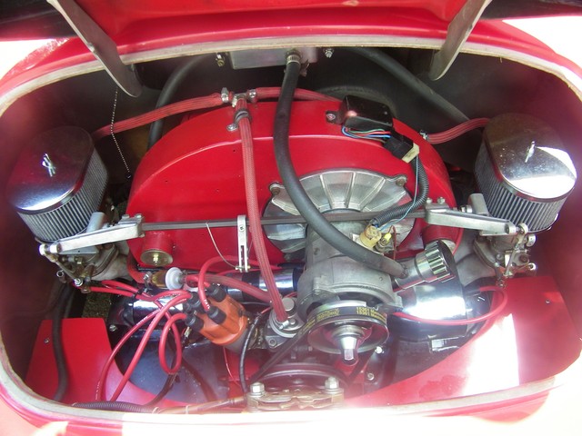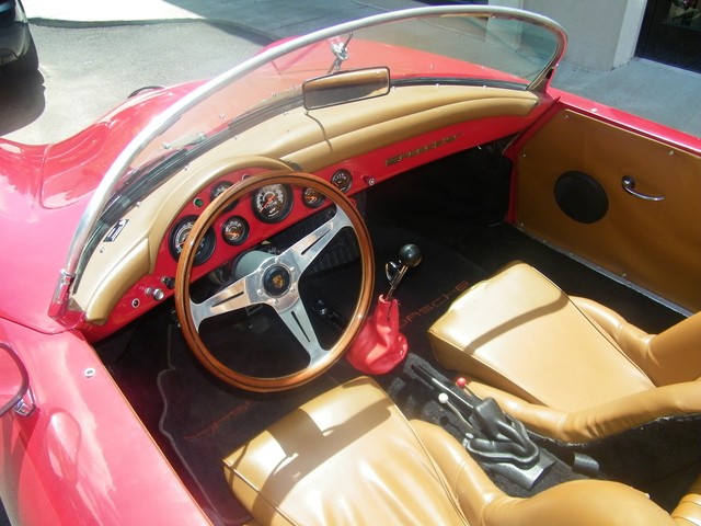 An original 1957 Speedster would not have been too much different from this particular vehicle. When the 356 was originally built, Porsche sourced the motor from its sister company, VW. It used a rear mounted air cooled flat 4 cylinder 1600cc motor that is extremely similar to the VW motor used in the reproduction. The body size and interior specs on this car are nearly identical to the original Speedster with this one just having a few extras which include a wider rear fender and CD player and speaker system which was installed to make the ride even more enjoyable.