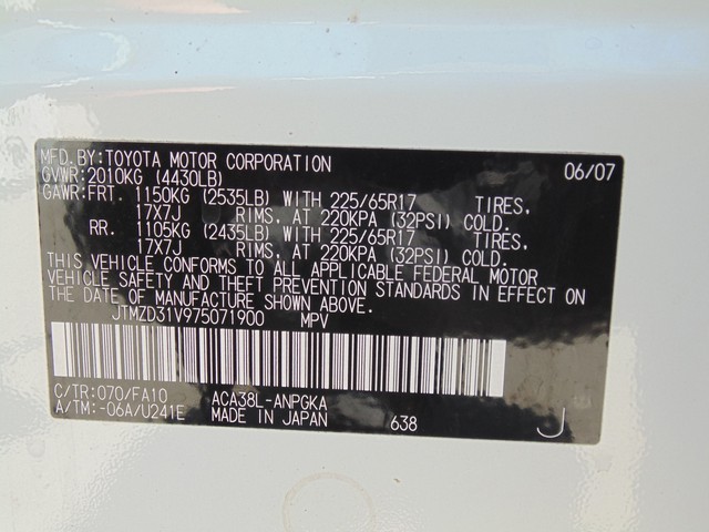 • VIN: JTMZD31V975071900