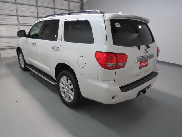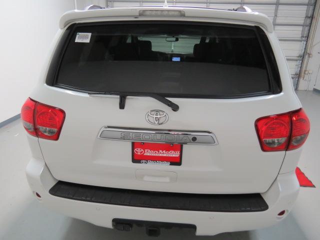 Designated by Consumer Guide as a 2011 Recommended Large SUV. This plush Sequoia, with grippy 4WD, will handle anything mother nature decides to throw at you during one of her bad days at work. It is nicely equipped with features such as Toyota Certified, 6-Speed Automatic Electronic with Overdrive, 4WD, Entertainment system, JBL Synthesis AM/FM 4-Disc CD w/Navigation, Power moonroof, 14 Speakers, 3rd row seats: split-bench, 4.30 Axle Ratio, 4-Wheel Disc Brakes, A/V remote, ABS brakes, Adaptive suspension, Air Conditioning, AM/FM radio, Auto tilt-away steering wheel, Auto-dimming door mirrors, Auto-dimming Rear-View mirror, Auto-leveling suspension, Automatic temperature control, Brake assist, Bumpers: body-color, CD player, Delay-off headlights, Distance-Pacing Cruise Control, Driver door bin, Driver vanity mirror, Dual front impact airbags, Dual front side impact airbags, Electronic Stability Control, Four wheel independent suspension, Front anti-roll bar, Front Bucket Seats, Front Center Armrest, Front dual zone A/C, Front fog lights, Front reading lights, Fully automatic headlights, Garage door transmitter: HomeLink, Headlight cleaning, Headphones, Heated door mirrors, Heated Front Bucket Seats, Heated front seats, Heated rear seats, Illuminated entry, Knee airbag, Leather Seat Trim, Leather steering wheel, Low tire pressure warning, Memory seat, MP3 decoder, Navigation System, Occupant sensing airbag, Outside temperature display, Overhead airbag, Overhead console, Panic alarm, Passenger door bin, Passenger vanity mirror, Power door mirrors, Power driver seat, Power passenger seat, Power steering, Power windows, Radio data system, Rear air conditioning, Rear anti-roll bar, Rear reading lights, Rear seat center armrest, Rear window defroster, Rear window wiper, Reclining 3rd row seat, Remote keyless entry, Roof rack, Security system, Speed control, Speed-sensing steering, Split folding rear seat, Spoiler, Steering wheel memory, Steering wheel mounted A/C controls, Steering wheel mounted audio controls, Sun blinds, Tachometer, Telescoping steering wheel, Tilt steering wheel, Traction control, Trip computer, Turn signal indicator mirrors, Variably intermittent wipers, Ventilated front seats, and Voltmeter. Toyota Certified Pre-Owned means you not only get the reassurance of a 12mo/12,000 mile Comprehensive warranty, but also up to a 7yr/100,000-Mile Powertrain Limited Warranty, a 160-point inspection/reconditioning, 1yr Roadside Assistance, trip-interruption services, rental car benefits, and a complete CARFAX vehicle history report.