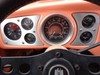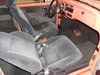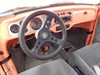 Inside, the seats are from an anonymous japanese car, and the passenger side seems to be at a permanent recline. (it tilts forward but only locks in at a leisurely 140 degrees) The  headliner, carpets, and door panels are all custom and still in good condition. The back seat has been replaced with a full complement of speakers and a custom access panel to the battery area. The dashboard has a nice array of gauges, and there's a roller accelerator pedal and a Gene Berg shifter. (see photos) The windshield also has a circular crack on the passenger side.