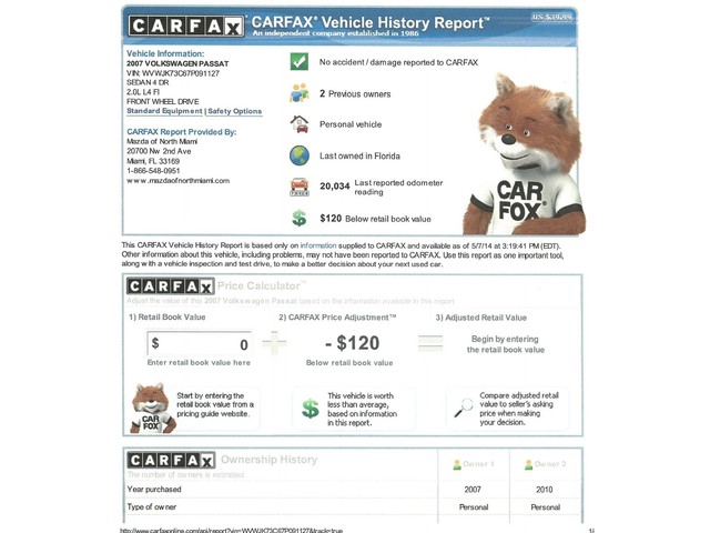 2007 PASSAT CARFAX CERTIFIED EXCELLENT CONDITION SPOTLESS FLORIDA BEAUTY