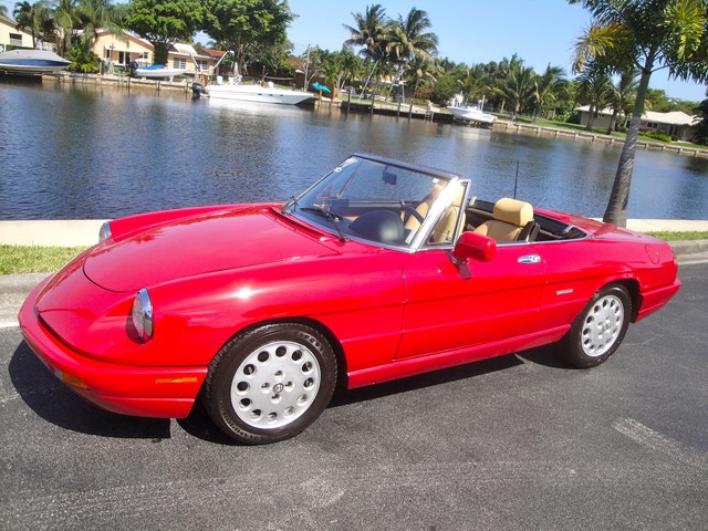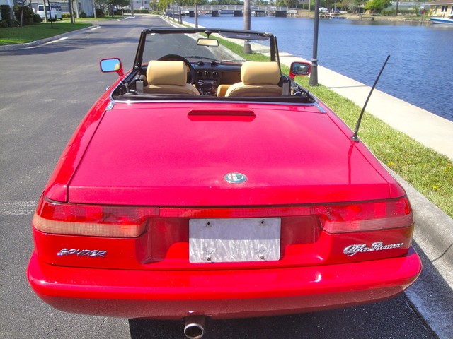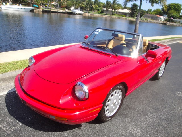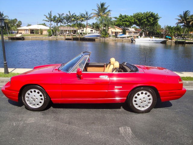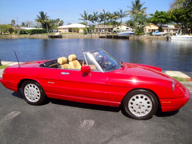 STUNNING 4TH GENERATION ALFA ROMEO SPIDER! LOW MILEAGE EXAMPLE! 5-SPEED MANUAL! PERFECTLY MAINTAINED! 14 FACTORY ALLOY WHEELS WITH FRESH TIRES! CARFAX CERTIFIED! Finished in Mille Magna Red with Tan Leather/Suede Interior and Stunning Black soft-top. Leather wrapped 4-spoke steering wheel and leather trimmed gear lever. Sony audio system with in-dash CD player. This is a very nice car that was definitely taken care of. if your looking for a piece of history than look no further. this is a gorgeous example of how an older vehicle is to be taken care of.