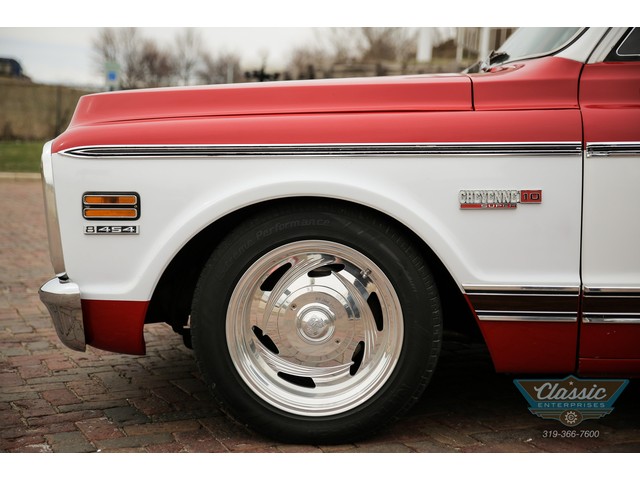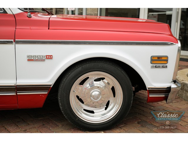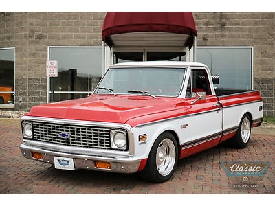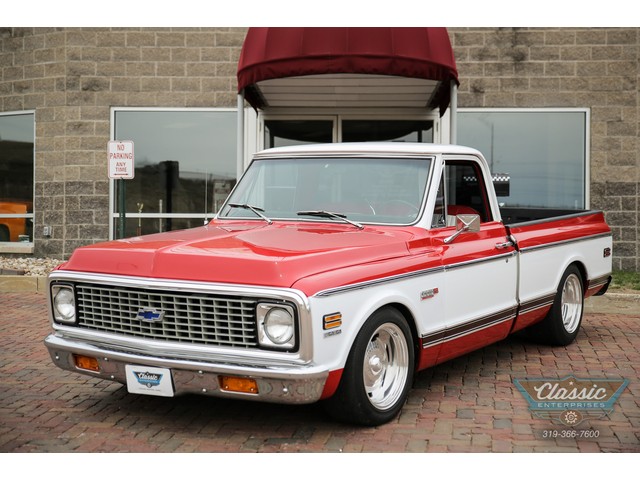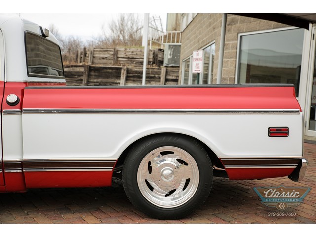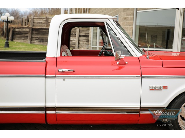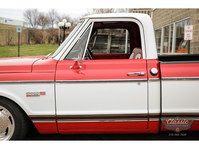 These Chevy Short-Wide trucks are hot and this one is exceptional. This great 1972 Chevrolet Cheyenne Short Bed was in the same family for over 30 years and spent its life in Las Vegas and AZ and is rock solid. Equipped with air conditioning, power steering and brakes with discs, power windows, and a custom red and white interior to match the striking paint scheme, and a stereo that will fill your ears with your favorite tunes this truck oozes cool. Don't miss out on your chance to own this very cool Chevy truck at a bargain price!