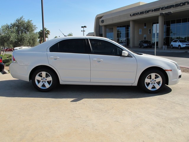 Lexus of Henderson presents this Ford Fusion with just over 54,400 miles and comes with a Clean Carfax history report. Features in this vehicle include a 6 Disc CD changer, Cruise control, 60/40 Split Folding Rear Seat, Power windows/locks/mirrors, Alloy wheels, Rear spoiler, Remote keyless entry, and more! Please contact us with any questions. The options and features include: Child Safety Rear Door Locks, Crash Severity Sensor, Dual-Stage Front Seat Frontal Airbags, Front Passenger Sensing System, Front Seat Side-Impact Airbags, LATCH Child Safety Seat Anchor System, Personal Safety System, Securilock Passive Anti-Theft System, Side Curtain Airbags, 60/40 Split Folding Rear Seat, 6-Speaker Audio System, 6-Way Power Driver Seat, Air Conditioning, AM/FM Stereo w/CD/MP3 System, Auxiliary Power Points, Manual Day/Night Interior Rearview Mirror, Message Center w/Trip Computer, Power Door Locks, Power Trunk Release, Power Windows w/Driver One-Touch Feature, Rear Window Defroster, Steering Wheel Audio Controls, Steering Wheel-Mounted Cruise Control, Steering Wheel-Mounted Speed Control, Tilt/Telescopic Steering Column, Fog Lights, Power Exterior Mirrors, Remote Keyless Entry System, Speed-Sensitive Windshield Wipers, Front & Rear Stabilizer Bars, Power 4-Wheel Disc Anti-Lock Brakes, Power Rack-And-Pinion Steering