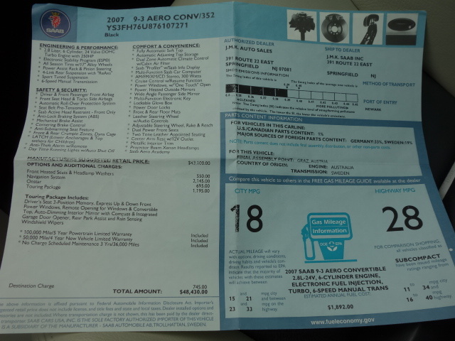SCROLL DOWN FOR 100 DETAILED PICTURES TO CHECK OUT THE CONDITION OF THE 2007 SAAB 9-3 AERO   & OUR TERMS AND SALES!