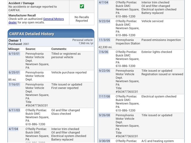We often use these services to check a vehicles background.  Carfax and Autocheck are wonderful services,  but they have their limitations.  Many times they will show more “owners” than we may state a vehicle has had.  This is because they are an information service only.  They have never seen the car, owned the car,  and have no other information about the car than what is reported from different agencies.  All of this information is originally hand entered into their databases at their source and mistakes and inconsistencies will occur !  For example when a dealer such as ourselves purchases a vehicle they may pick it up as a new owner when this is of course not the case as dealers are not end users.  Also they often contain mileage errors and inconsistencies that appear to make little sense.  Just like any computer generated information report you need to know how to read the report & when to read between the lines. Having seen thousands of these over the years we can help you understand the information listed in these reports,  just ask.