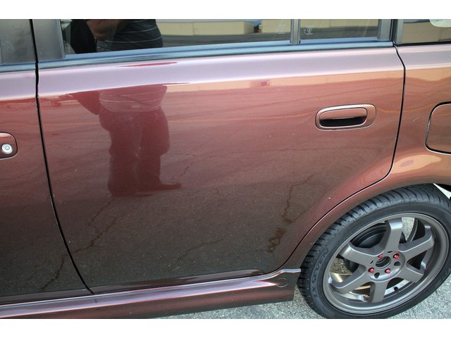 small dent in front of rear right wheel (see pictures) and there are some scratches as expected from normal wear visible at close inspection.