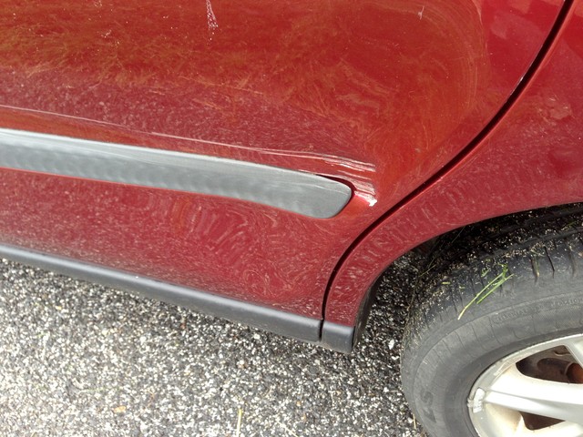 The exterior paint has scratches/dent on doth sides. Nothing major, no rust, but looks to have scrapped a pole or another car. I have included pix of the damage.