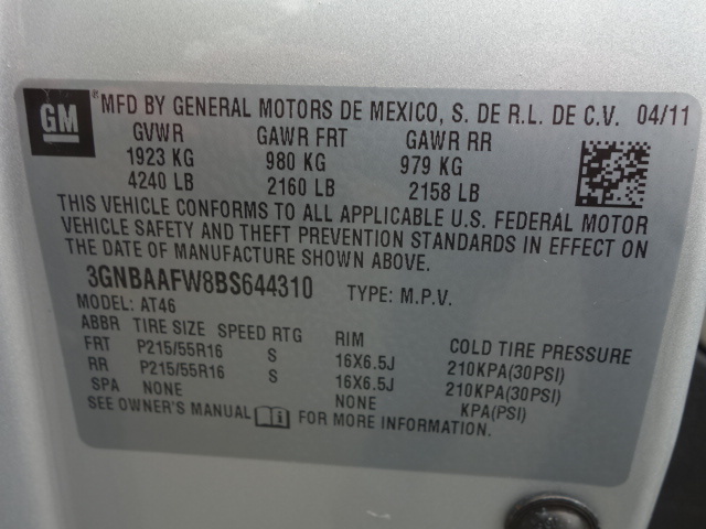 • VIN: 3GNBAAFW8BS644310