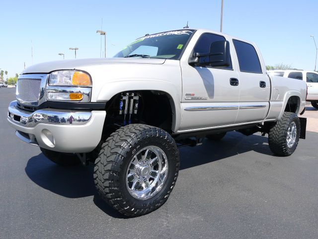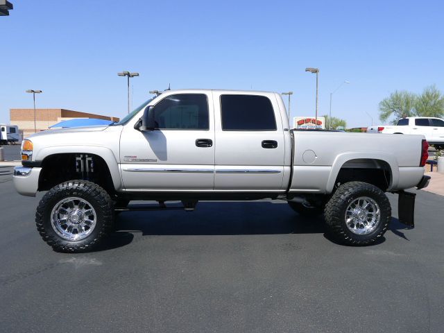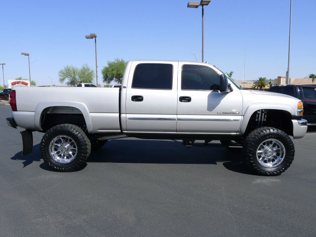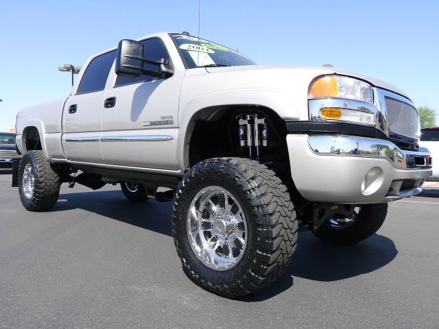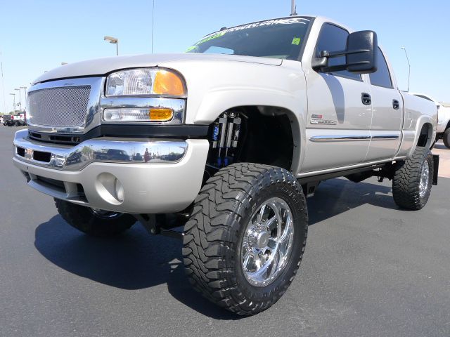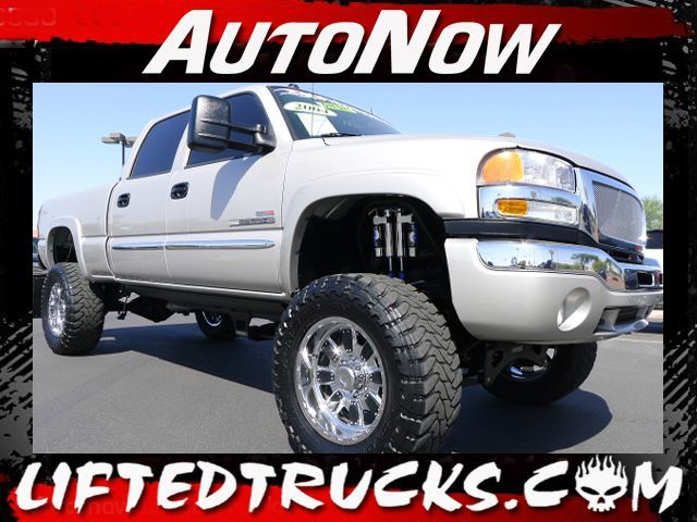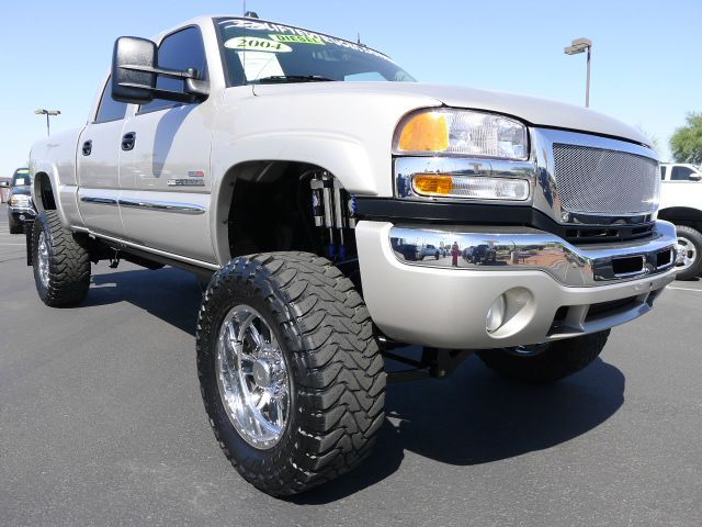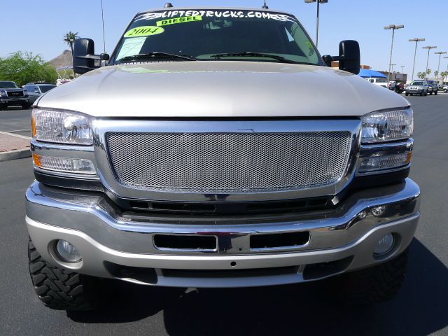 2004 GMC SIERRA 2500HD CREW CAB DIESEL 4X4 USED LIFTED TRUCK FOR SALE, FEATURING A PROFESSIONALLY INSTALLED FABTECH OFF ROAD SUSPENSION LIFT, 37 INCH TOYO M/T TIRES ON 20 INCH WELD RACING CHROME WHEELS, HIGH OUTPUT FUEL EFFICIENT DURAMAX 6.6L TURBO DIESEL V8 MOTOR WITH A HIGH FLOW AIR INTAKE, MAGNAFLOW CUSTOM HIGH FLOW EXHAUST, DUAL FOX SHOX WITH RESERVOIRS, REAR AIR BAGS WITH ON BOARD FILL SWITCH, COMPRESSOR AND GAUGE, BILLET GRILLE, AMP RESEARCH AUTO RETRACT POWER STEPS, KENWOOD NAVIGATION, BOSE AUDIO, STEERING WHEEL CONTROLS, ON STAR, POWER HEATED MEMORY SEATS, GRAY LEATHER INTERIOR, A/C, POWER WINDOWS, MIRRORS, LOCKS, TILT, CRUISE, TOW PKG., SPRAYED IN BED LINER, DIAMOND PLATE TOOL BOX, TINT, PYTHON ALARM, SUPER CLEAN AND MEAN, READY FOR OFF ROAD ADVENTURE!