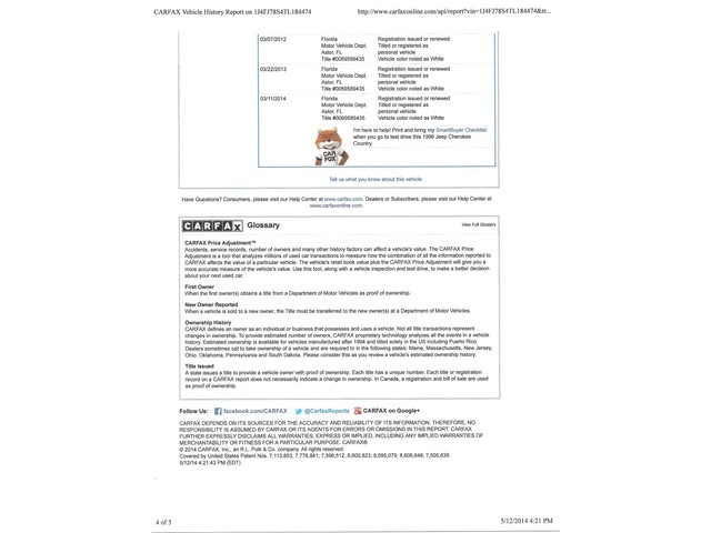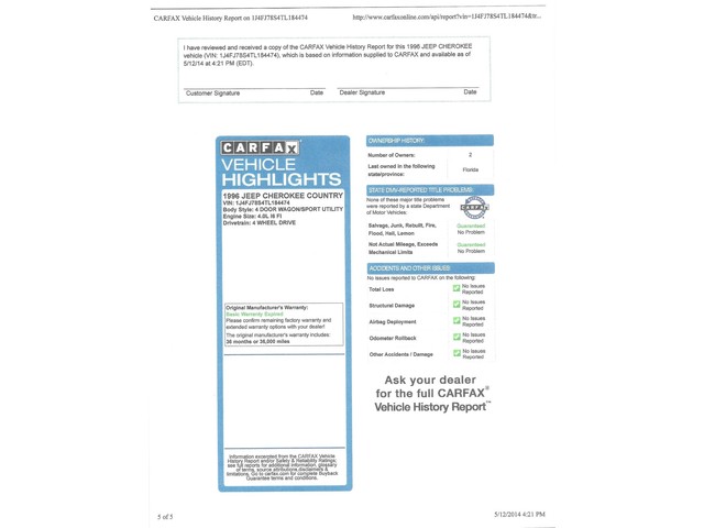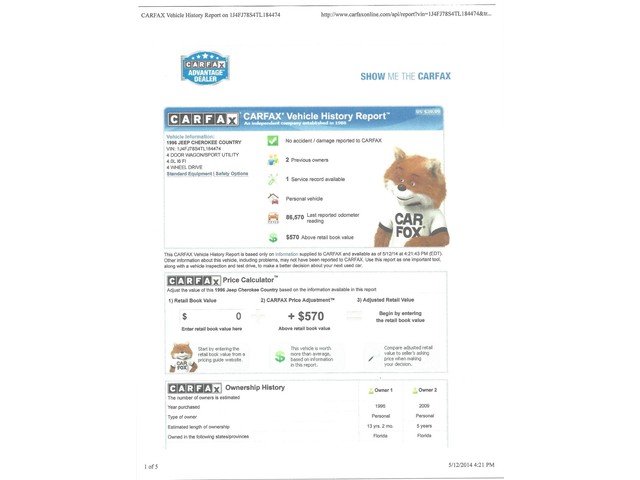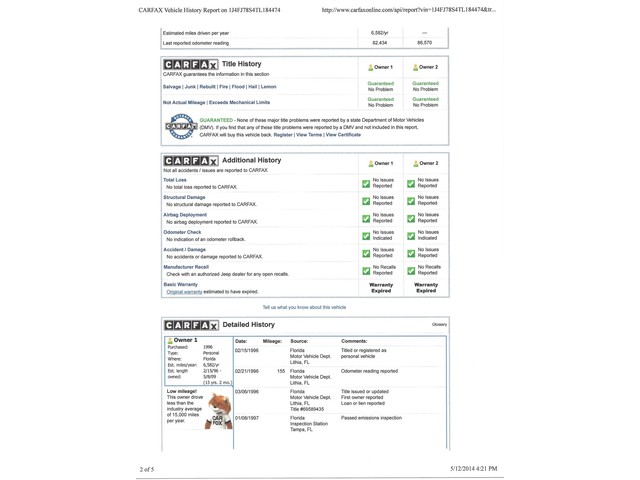 *Clean Carfax that is shown below the pictures beneath. History shows that this Jeep has been in Florida most of its life and has no rust underneath.