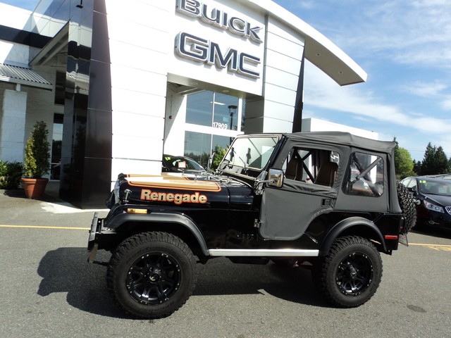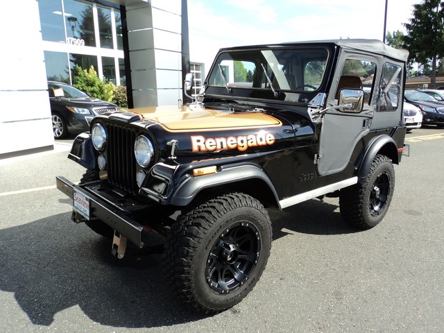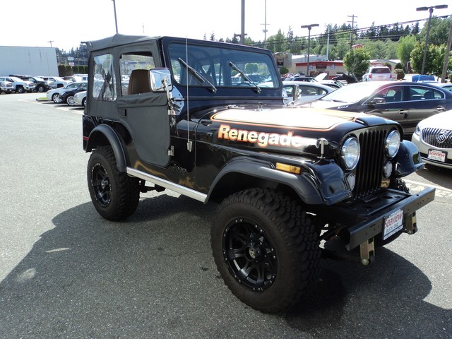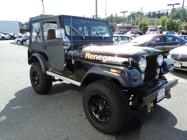 1976 Jeep CJ5 Renegade. IF YOU ARE LOOKING FOR A SUPER CLEAN CJ-5 ,HERE IT IS !! THIS CJ IS SUPER SOLID , NICE FLOORS ,PAN, AND SHEET METAL, VERY NICE BLACK PAINT WITH A BRAND NEW BLACK TOP AND DOORS. 304 CI ENGINE WITH 3-SPEED MANUAL ,NEW WHEELS AND TIRES , LIFTED , AND JUST SERVICED THROUGH OUR GMC/BUICK DEALERSHIP ! COME BY FOR A DRIVE ,OR WE CAN HELP WITH WORLD-WIDE-SHIPPING ! CLASSIC CAR FINANCING ALSO AVAILABLE , ALL TYPES OF TRADE-INS ACCEPTED ! OR CALL ME DIRECT @ 1-800-743-1793 THANKS RANDY