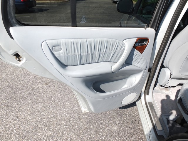 THE INTERIOR LOOKS GOOD!  THE GRAY LEATHER SEATS LOOK GOOD IN FRONT, BUT DO HAVE SOME SLIGHT LEATHER CREASING/DYE WEAR (SEE PICS BELOW)!  THE REAR LEATHER SEATS LOOK GREAT!  THE DRIVER'S FLOOR MAT IS MISSING AND THE DRIVER'S DOOR POCKET IS BROKEN (SEE PICS).  THE ONLY INTERIOR ISSUE OF NOTE IS A TORN STORAGE POCKET ON THE BACK-SIDE OF THE FRONT PASSENGER SEAT (SEE PIC BELOW).  OTHERWISE, THE INTERIOR LOOKS VERY GOOD OVERALL WITH NICE DOOR PANELS, CARPET, DASH, WOOD TRIM, HEADLINER, AND MORE!