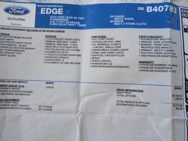 2013 Ford Edge SE 14K NO RESERVE Damaged Salvage Rebuildable Repairable