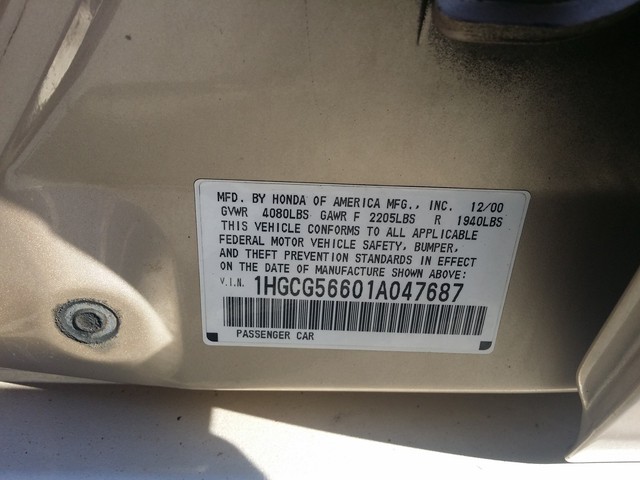 VIN: 1HGCG56601A047687   Interior Color: Tan