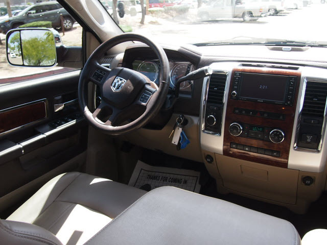 Superstition Springs Chrysler Jeep Dodge is pleased to be currently offering this 2012 Ram 2500 4WD Mega Cab 160.5 Laramie with 53,743 miles. Only the CARFAX Buyback Guarantee can offer you the built-in peace of mind of knowing you made the right purchase. This vehicle is Certified Pre-Owned. This 2500 4WD Mega Cab 160.5 Laramie's level of quality is not meant for just anyone. It's meant for the person who strives for a classy, comfortable, and luxurious car. At home in the country and in the city, this 2012 4WD 2500 4WD Mega Cab 160.5 Laramie has been wonderfully refined to handle any occasion. Smooth steering, superior acceleration and a supple ride are just a few of its qualities. This 2012 2500 4WD Mega Cab 160.5 Laramie has extra options like the Ram navigation system. The additional feature will keep you safe and will make this 2500 even more dependable. And with WARRANTY FOREVER, How Can You Go Wrong! More information about the 2012 Ram 2500: The Ram 2500 and 3500 are heavy-duty trucks that sacrifice some ride quality and maneuverability, compared to lighter-duty pickups, in favor of improved towing and hauling ability. The heavy-duty Ram models are, like rival models from Chevrolet, GMC and Ford, far more luxurious and comfortable than their predecessors, even as they haven't given up any serious work ability. Entertainment and connectivity features abound and hint that these trucks see use well beyond the construction site. Ram says that the 2500 and 3500 are the first in their segment to offer an available 10-speaker surround-sound system, as well as a number of other premium options such as Sirius Backseat TV. Strengths of this model include Tough, work-oriented construction, serious towing and hauling ability, full set of luxury and entertainment options, and stump-pulling Cummins turbo-diesel The mileage represented on this vehicle is accurate.There are no signs of prior damage on this vehicle.There is no damage evident on this vehicle.There are no noticeable dings on the exterior of this vehicle.This vehicle has a smooth shifting transmission.The engine on this vehicle is running properly.All power equipment is functioning properly.Overall, this vehicle's exterior is clean.The interior is clean and in good condition.There is approximately 75% of the tire tread remaining.