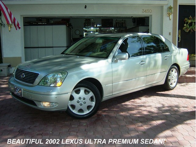 THIS 2002 LEXUS LS430 ULTRA PREMIUM SEDAN IS SILVER WITH CREAM LEATHER! IT WAS THE MOST EXPENSIVE EDITION AVAILABLE IN 2002! IT RUNS, DRIVES, AND PREFORMS ABSOLUTELY LIKE BRAND NEW! THE ULTRA EDITION COMES WITH EVERY OPTION POSSIBLE INCLUDING DUAL ACTION GLASS MOON ROOF, FACTORY NAVIGATION, AM-FM CASSETTE, CD PLAYER, REAR COMPARTMENT COOLER, REAR POWER RECLINING SEATS, POWER MASSAGE, HEATED, REAR SEAT CONTROLS FOR THE RIGHT FRONT SEAT, RADIO AND AIR CONDITIONING TOO! POWER REAR SUN SHADE. REAR SIDE WINDOW SUN SHADES. ALOY WHEELS WITH LIKE BRAND NEW CONTINENTAL RADIAL TIRES. MEMORY AND HEATED AND COOLED FRONT SEATS. PARKING ASSIT WARNING. SPORT SHOCK ADJUSTMENT. TRANSMISON FOR ICE AND SNOW OR NORMAL. PLUS ALL THE OTHER FACTORY OPTIONS! IF YOU ARE LOOKING FOR A GREAT LUXURY DRIVER FOR A VERY REASONABLE PRICE, LOOK NO FURTHER! YOU JUST FOUND ONE! I SELL ALOT OF MERCEDES AND BMW'S BUT I MUST SAY THIS LEXUS IS A MUCH BETTER AND MORE RELIABLE AUTOMOBILE ALL THE WAY AROUND! PLEASE LOOK AT ALL THE PICTURES AND YOU WILL AGREE THIS IS ONE GREAT LOOKING AUTOMOBILE FOR THE MONEY! AFTER A VERY CLOSE INSPECTION ALL WE COULD FALUT ON THIS LEXUS WAS SOME LIGHT STONE CHIP TOUCH UPS, SOME VERY-VERY MINOR WEAR ON THE DRIVERS SEAT THAT STILL LOOKS GREAT. THE SWADE HEADLINER IS PERFECT AS IS THE REST OF THE ALL LEATHER INERTIOR!