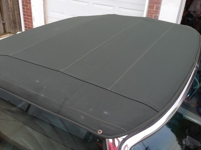 Top is a dark green...much prettier that the pix show...and is in near new condition. Hard top has some scartches, to refinish entire top is $225.