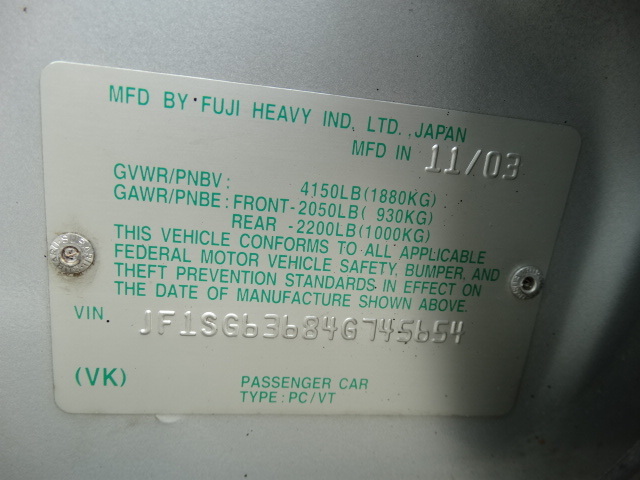 • VIN: JF1SG63684G745654