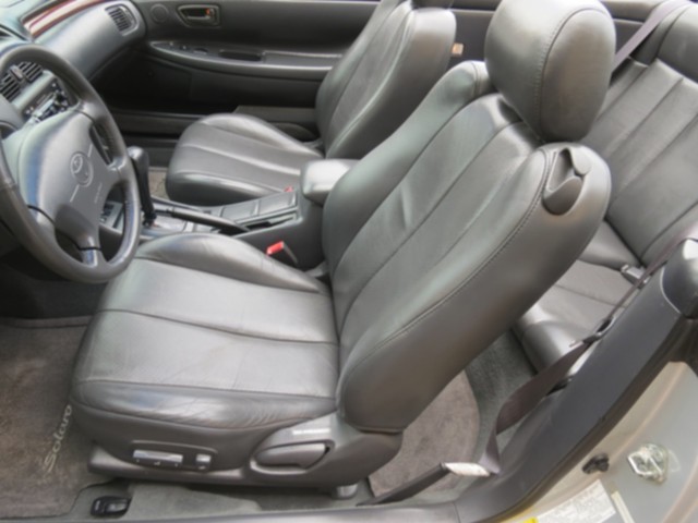***THE DARK CHARCOAL LEATHER INTERIOR STILL LQQKS GOOD & SHOWS "MUCH" LESS THAN MINIMAL WEAR..NICE DOOR PANELS,NON WARPING DASH-NICE CARPETING W/FACTORY SOLARA FLOOR MATS..THIS SOLARA IS A NON SMOKER OWNED VEHICLE,SO THERE ARE NO YELLOWING STAINS or FOWL ODORS..THE BLACK CLOTH POWER CONVERTIBLE TOP LQQKS GOOD,NO RIPS & DOESN`T LEAK.