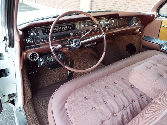 This BEAUTY has what appears to be the STRONG - ORIGINAL - "Ground Pounding" - 390 CID V8 Motor in it and it is running very well. This motor came from the factory with 404 foot pounds of torque  and 304 horsepower !! It still retains the ORIGINAL four barrel intake manifold, ORIGINAL exhaust manifolds, ORIGINAL Cadillac scripted  valve covers, ORIGINAL air cleaner housing, ORIGINAL glass "Klear-View" coolant reservoir, ORIGINAL Carter 4 Barrel carb with electric choke and the ORIGINAL Rebuilt Delco-Remy generator.  It's a big car but trust me it's a rocket !! Sounds good too with the factory style  exhaust system. The engine is backed by a - SMOOTH - Hydra - Matic four speed automatic transmission which also functions very well. All of the ORIGINAL rubber weatherstripping is still soft, supple and in good condition for being original. The BEAUTIFUL -  Code "69" -Light Rose Cloth, Leather and Vinyl Wood Grain Luxury Fleetwood  interior is in VERY NICE condition with a VERY NICE Light Rose Cloth and vinyl front bench seat with a padded center fold-down armrest,  VERY NICE ORIGINAL Matching Light Rose vinyl and real wood accented door panels, VERY NICE ORIGINAL Light Rose Cloth and  Leather rear bench seat with a padded fold-down center armrest,  VERY NICE ORIGINAL Light Rose vinyl sunvisors, VERY NICE Rose vinyl headliner, VERY NICE ORIGINAL Cadillac steering wheel, NICE  Rose carpeting, VERY NICE ORIGINAL factory gauge cluster's, NICE  ORIGINAL Rose and Chrome accented dash and a VERY NICE Rose vinyl dash pad WITH NO CRACKS. The - Code "69" - Olympic White exterior paint is EYE POPPING BEAUTIFUL with really little to no wear showing  and is still bright, shiny and looks STUNNING as you can clearly see in the picture and video above and the 100 ADDITIONAL PICTURES BELOW. The - Code "69" - Light Rose cloth, Leather and vinyl  Fleetwood interior and the complementing - Code "12" - Olympic  White exterior is a BEAUTIFUL color combination indeed !! How could you get any better ?!! This Car is a great runner and a real nice looker and is nicely equipped including - Optional - FACTORY AIR CONDITIONING with no belt installed on the factory compressor as the cmpressor was getting noisy ( probably needs new bearings installed in the compressor), factory power brakes, factory power steering, factory power windows, factory six way power front bench seat, factory power wipers, original chrome remote driver's side view mirror, factory front and rear power wing windows although the left rear wing window will not open or close, factory fender skirts, good glass,  factory gauge clusters with a 120 MPH speedometer,  factory trip odometer, factory original working fender mounted turn signal indicator lights, factory cornering lights, original AM radio which is no longer working, good heater and defroster, original clock which is no longer working, original day/night rear view mirror and an AWESOME Panasonic digital AM / FM / CD Player stereo radio with 2 Kicker 6 inch speakers mounted in the front kick panels. This Cadillac has great looks and UNBELIEVEBLY smooth power ! I drove this car for a couple of days as my everyday driver to and from the office and running errands as needed and it ran and drove flawlessly !! It doesn't have a squeak or rattle and rides as smooth as a new DeVille. All of the original exterior light lenses and reflectors are clear, bright and BEAUTIFUL !! There are not many of these BEAUTIES left on the roads for sure !
