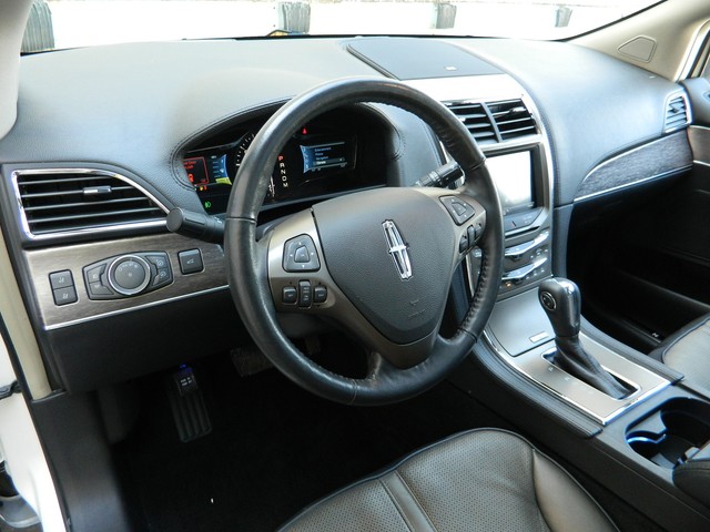 If you are looking for a one-owner SUV, try this outstanding 2011 Lincoln MKX and rest assured knowing that the previous owner took superb care of it. It is nicely equipped with features such as 6-Speed Automatic with Select-Shift, beautiful black exterior, burned brown interior w/Perforated Leather-Trimmed Bucket Seats, 10 Speakers, 20 Wheels, 4-Wheel Disc Brakes, Air Conditioning, Auto-dimming door mirrors, Auto-dimming Rear-View mirror, Automatic temperature control, Brake assist, Delay-off headlights, Driver vanity mirror, Dual front impact airbags, Dual front side impact airbags, Electronic Stability Control, Four wheel independent suspension, Front Bucket Seats, Front dual zone A/C, Fully automatic headlights, Garage door transmitter: HomeLink, Heated door mirrors, Heated front seats, Illuminated entry, Low tire pressure warning, Memory seat, Occupant sensing airbag, Outside temperature display, Overhead airbag, Overhead console, Panic alarm, Panoramic Vista Roof, Passenger door bin, Passenger seat mounted armrest, Passenger vanity mirror, Perforated Leather-Trimmed Bucket Seats, Power door mirrors, Power driver seat, Power passenger seat, Power windows, Radio: Premium AM/FM Stereo/CD/MP3, Rear seat center armrest, Rear window wiper, Remote keyless entry, Security system, SIRIUS Satellite Radio, Navigation system, Speed control, Adabtive cruise control, Speed-Sensitive Wipers, Split folding rear seat, heated rear seats, Spoiler, Steering wheel mounted A/C controls, Steering wheel mounted audio controls, Telescoping steering wheel, Tilt steering wheel, Traction control, and Ventilated front seats. New Car Test Drive said it ...brakes more authoritatively and more progressively. It rides much quieter on the highway than the previous version. Its wide array of onboard electronics and entertainment systems are clearly among the best in the industry in terms of capability and ease of use... The pin-you-to-your-seat performance of this terrific Lincoln MKX will make it a favorite among our more