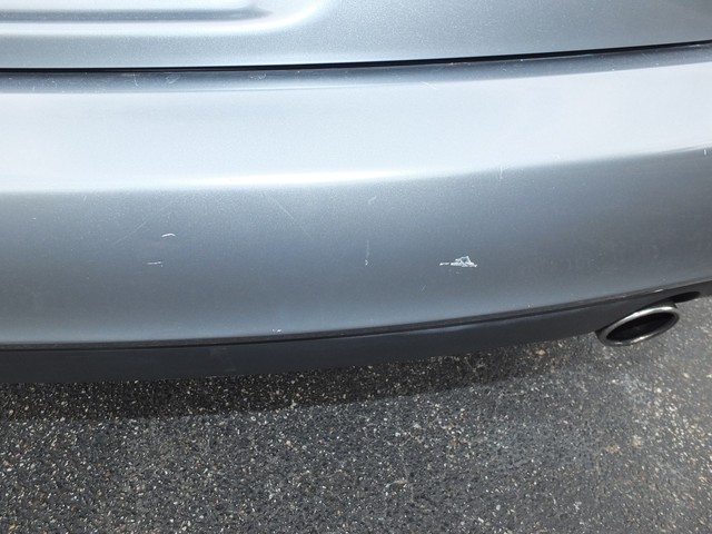 THE METALLIC GRAY PAINT LOOKS BEAUTIFUL AND GLOSSY WITH ONLY A FEW VERY TINY PAINT CHIPS HERE AND THERE.  THE ONLY AREA OF NOTICEABLE PAINT BLEMISHES IS ON THE REAR BUMPER, WHICH HAS SEVERAL CHIPS/SCRATCHES/SCRAPES ON IT (SEE PICS BELOW).  ASIDE FROM THE REAR BUMPER, THE PAINT AND BODY ARE IN VERY NICE CONDITION!