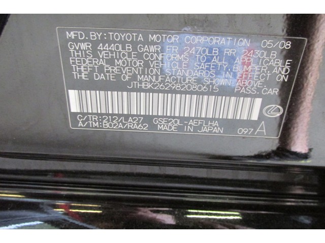 • VIN: JTHBK262982080615
