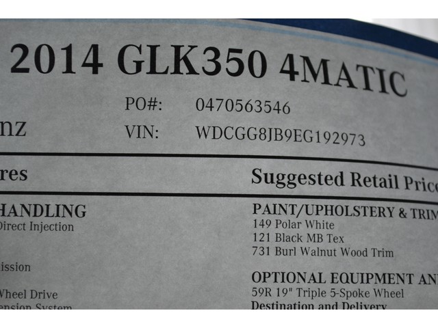 2014 GLK350 4Matic. Polar White with Black MB Tex interior and Burl Walnut Wood Trim. Manufacturer Warranty still applies. Only 9,352 miles!