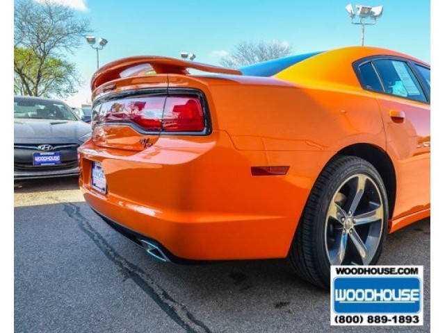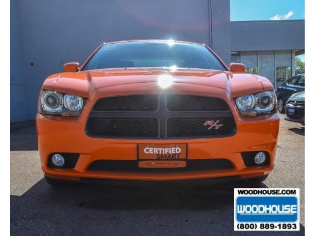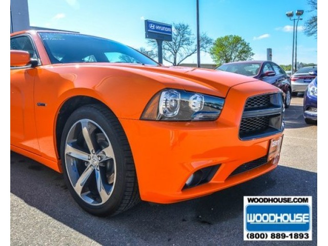 Barely driven around the block: 2014 Dodge Charger RT 100th Anniversary edition.  Less then 300 miles - what an opportunity to save.  This beautiful orange sedan is loaded: heated mirrors, cruise, tilt, dual climate control, remote start, keyless entry, navigation on 8.4" screen, dual power seats, heated leather, rear spoiler, chrome wheels, voice recognition system and Bluetooth.  This is a one owner, employee trade.  Call Kirk Lilly today at Wodohouse Chrysler Dodge Jeep Ram today with all your questions or just to talk about this hot car!  712-277-3221.