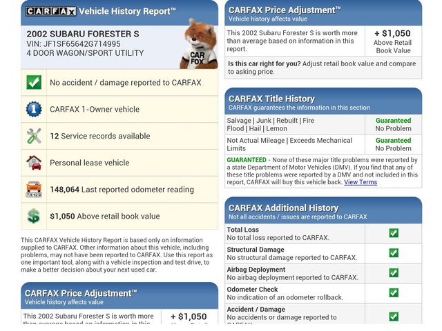 2002 SUBARU FORESTER S AWD ONE OWNER 80+PHOTOS SEE DESCRIPTION WOW MUST SEE!!