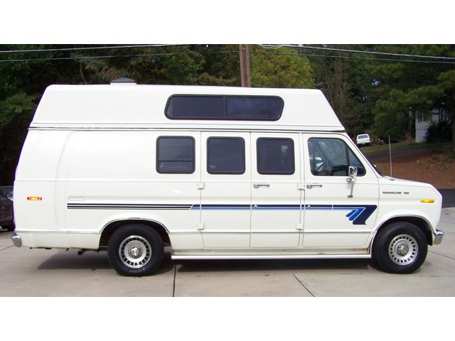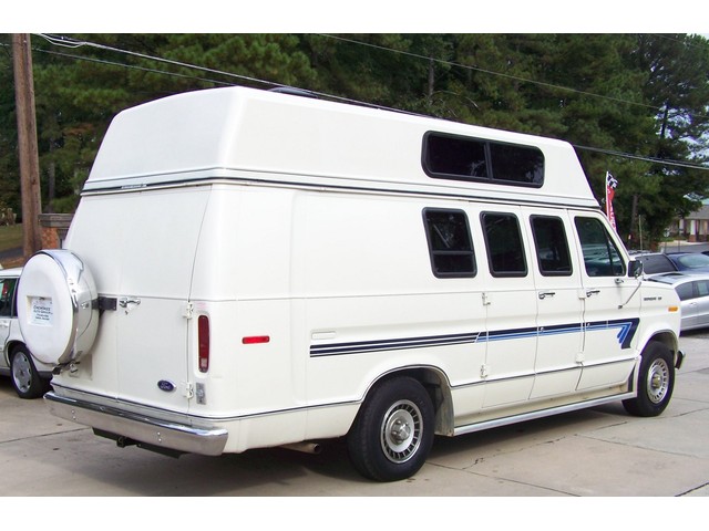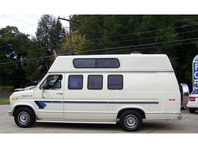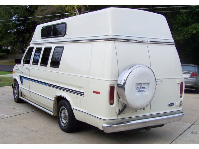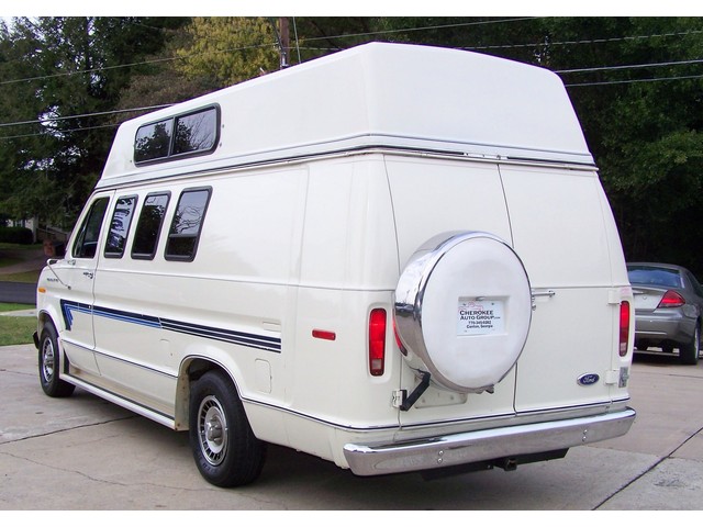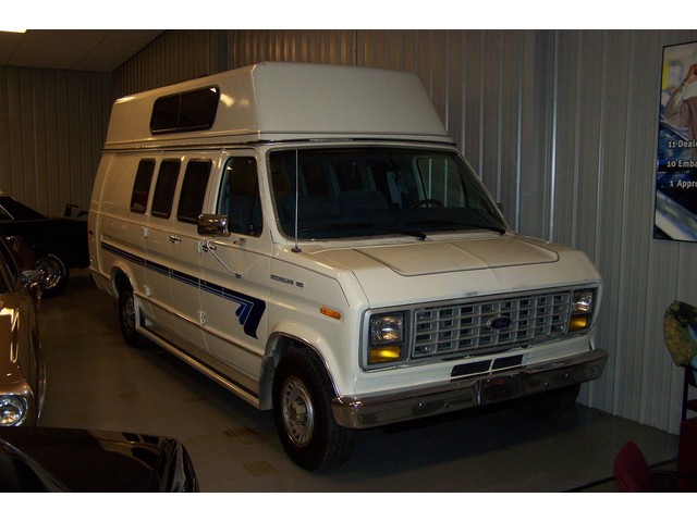 NO RESERVE AUCTION!!! YOUR TOP BID COULD OWN THIS ONE! CHECK OUT ALL 95 PHOTOS AND VIDEO OR THIS OLD GAL! Neat rock solid non-rusty southern 1-owner super extended length High Top RV Camper E150 Econoline Van! This is one cool 80's machine! It has loads of features like sink, toilet, frige, power roof fan, outside 110v hook up, two front captins chairs & rear seating for 3 to 4 passengers, two big beds, upper kids bunk, lockable outside spare tire carrier, lots of windows that open and shades, lots of nice wood, strong 5.0L 302 V8, Automatic overdrive, running boards, lots of storage. lots of cabnets, cold ac, cruise, power steering, power brakes, very clean and plush fabric thru-out, lots of lights, power strip plug in, am/fm/stereo-cass and much more! Nice white body the front drivers fender has a mentionable dent, and interior is excellent! This old gal runs and drives out well and should be a good one for new owner! The miles listed in ad are what are showing on odometer they have turned past 99,999 and look to be correct at 128k! Neat machine and bet you will not see another on the road anytime soon! We have vehicle parked in our showroom it is that decent please call ahead to set up a time to check it out!
