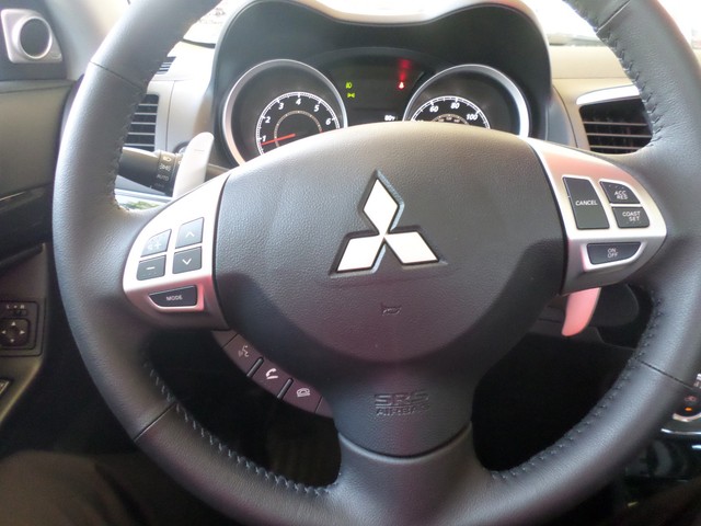 GT trim, Tarmac Black Pearl exterior and Black interior. Keyless Start, GT TOURING PKG, Alloy Wheels, Overhead Airbag. READ MORE! KEY FEATURES INCLUDE Auxiliary Audio Input, Bluetooth Connection, Aluminum Wheels, Keyless Start. Remote Trunk Release, Keyless Entry, Child Safety Locks, Steering Wheel Audio Controls, Stability Control. OPTION PACKAGES GT TOURING PKG: leather seat trim, heated front bucket seats, pwr glass sunroof, HID auto on/off headlights, rain-sensing wipers, 710-watt Rockford Fosgate PUNCH premium sound system w/(8) speakers, 10" subwoofer, AM/FM stereo, SiriusXM satellite radio w/(3) month subscription from date of sale, rear lip spoiler, auto-dimming rear view mirror w/camera. GT with Tarmac Black Pearl exterior and Black interior features a 4 Cylinder Engine with 168 HP at 6000 RPM*. Non-Smoker vehicle. EXPERTS REPORT Edmunds.com's review says "The 2013 Mitsubishi Lancer is a sporty alternative to conventional economy sedans.".