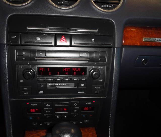 This Audi is well equipped. It has Zenon lights, power top, upgraded alloy wheels, heated seats, memory seats, lumbars, intermittent wipers, power mirrors, fog lights, keyless entry, climate control, info center, and power locks.