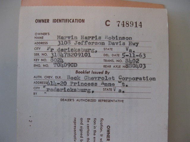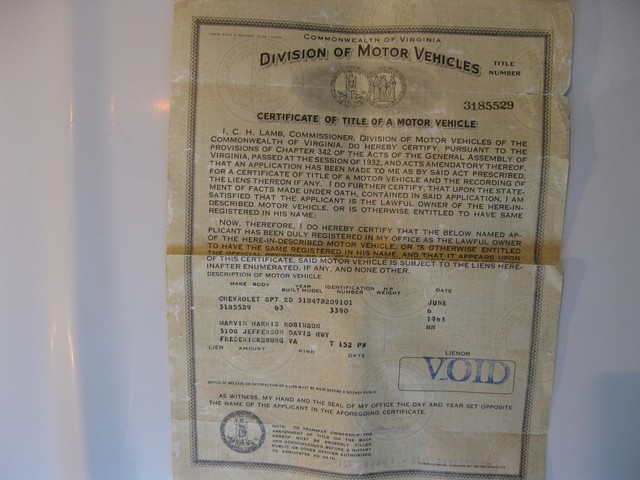 This is a nearly all original car that has been in the same family from new. It has never been modified or cut and has all its original equipment. It comes with documentation, including the original title, warranty book and owners manual. It has always been a Virginia car and is very solid with no rust in the floors, trunk, frame, body mounts, etc. The body does have some surface rust but just a couple of small areas are rusted through (please see photos for details).