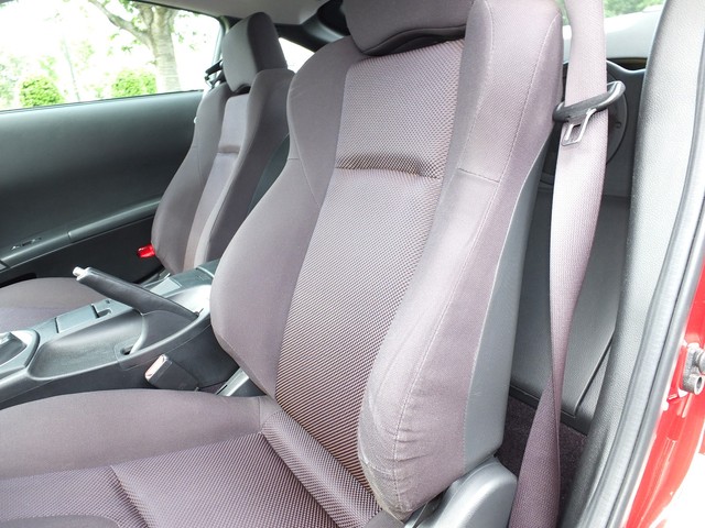 THE INTERIOR LOOKS NICE!  THE BLACK CLOTH SEATS ARE VERY COMFORTABLE AND SUPPORTIVE.  THE DRIVER'S SEAT HAS A VERY SLIGHT BIT OF WEAR ON THE FABRIC OF THE OUTSIDE BOLSTER, BUT NO HOLE.  THERE ARE SOME SCRATCHES IN THE BLACK COATING OF DRIVER'S DOORPULL ON THE DOOR PANEL.  OTHER THAN THOSE TWO ISSUES, THE INTERIOR LOOKS EXCELLENT!