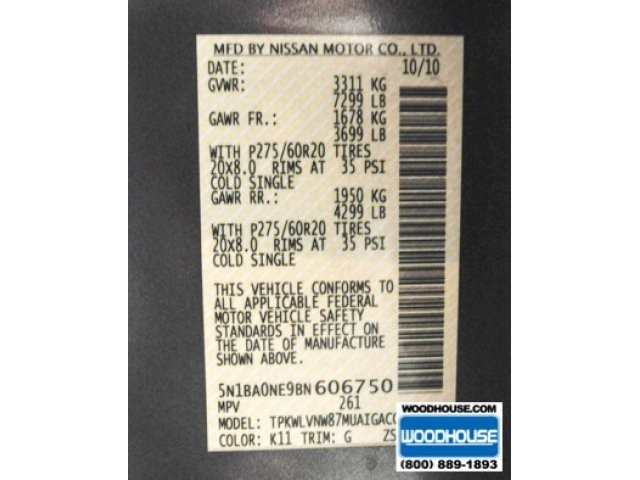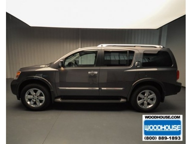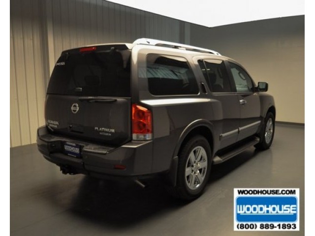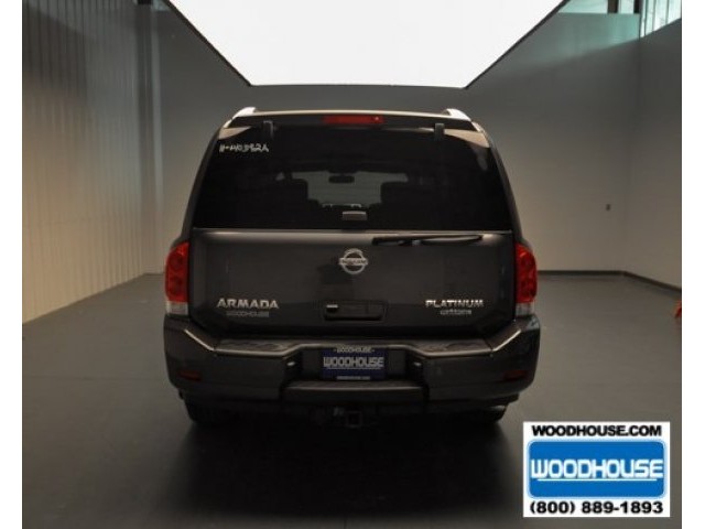 Fully loaded 2011 Nissan Armada Platinum 4x4.  Nissan held nothing back on this full size SUV: heated mirrors, cruise, tilt, rear climate, front row dual climate, keyless entry, 3rd row seat, DVD system, navigation, dual power seats, heated leather seats, running boards, 2nd row captain's seats, alloys wheels, tow hitch and fog lights.  Call Ryan Pemberton at Woodhouse Nissan today with all you questions - 402-731-2622.  Ryan is a certified Nissan sales consultant with many years experience - he can help with anything you may want to know.