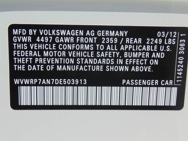 • VIN: WVWRP7AN7DE503913