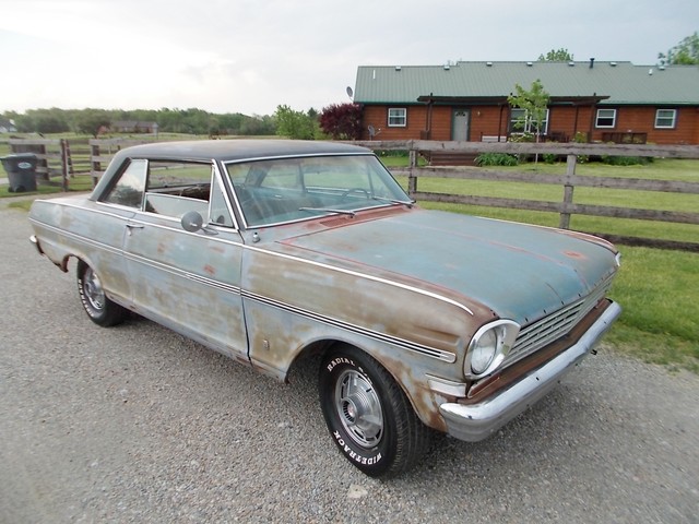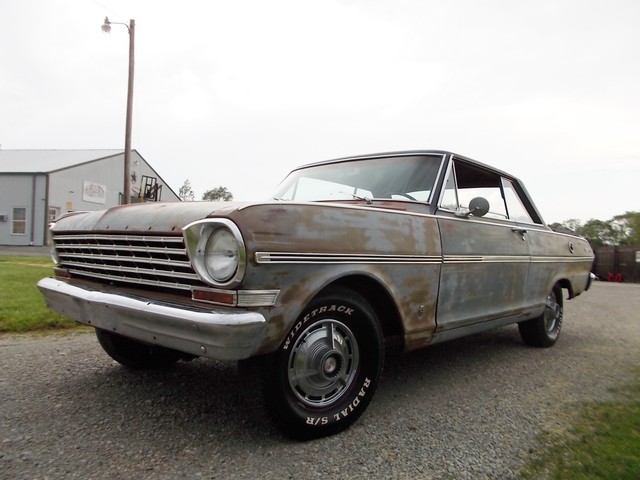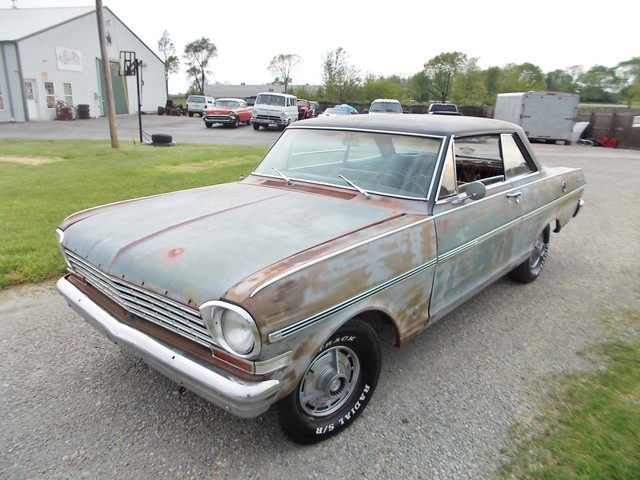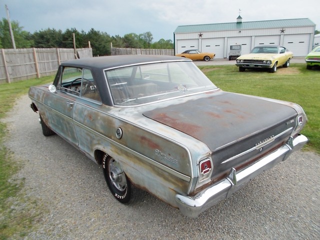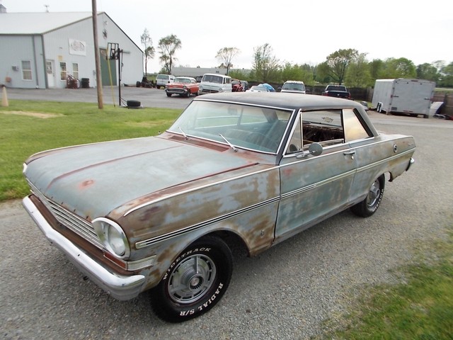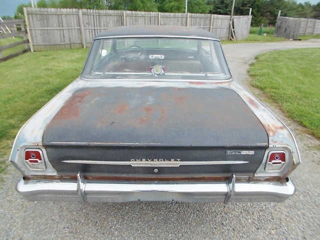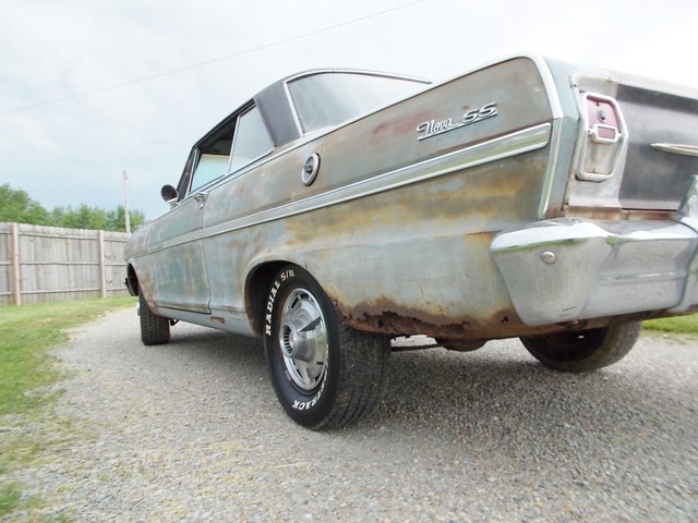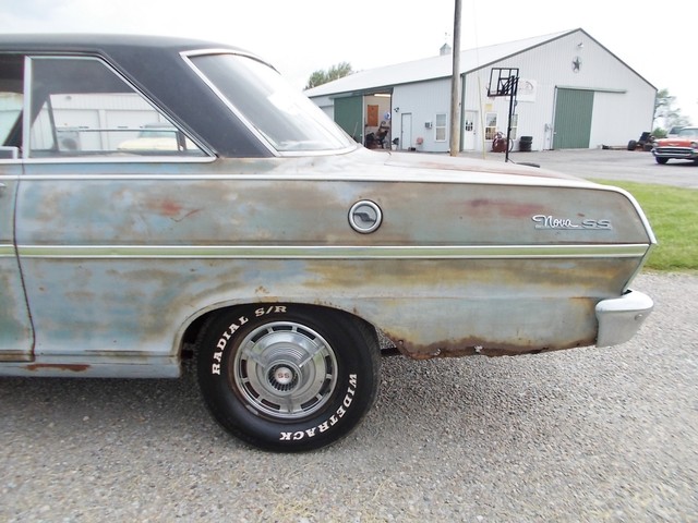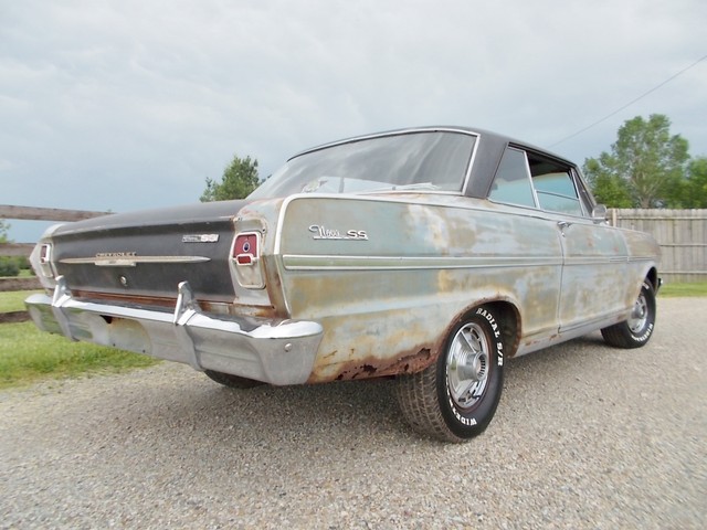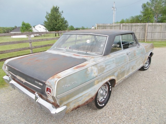 LOW RESERVE ON THIS TRUE SS NOVA BARN FIND IN RAT ROD CONDITION. IT COULD LOOK COOL WITH A CLEAR COAT ON HER. ALL SS NOVAS IN 63 WERE 6 CYL. THIS ONE IS AND HAS A 2SP AUTO WITH 3.55 GEAR. NO POWER OPTIONS. THIS CAR WASNT RUNNING WHEN I GOT IT. A GUY BOUGHT IT FROM OL FARMER IN HIS 19TH CENTURY BARN. PULLED DOGHOUSE OFF TO START RESTORING AND RAN INTO FINANCIAL PROBLEMS SO HE SOLD IT. I HOOKED WIRES BACK UP, PUT A BATTERY TO IT AND TO MY SUPRIZE, FIRED RIGHT UP. IT REALLY RUNS GOOD WITH TRANS SHIFTING GOOD TOO. THE HEADLIGHTS AND TAIL LIGHTS WORK. GAS GAUGE PEGS WHEN U HIOT THE KEY. THE OIL PRESSURE WORKS. NOT CHARGING AND I RUN IT ON A GALLON JUG OF GAS. TANK IS SKUNKY. I MANGED TO GET BRAKES AFTER A COUPLE LINES WERE REPAIRED BUT ONE STARTED LEAKING AGAIN AND ONE BRAKE LOCKS UP. THEY WORK ENOUGH TO TEST ON MY LOT AND LOAD. E BRAKE WORKS SURPRIZINGLY.