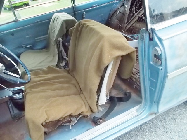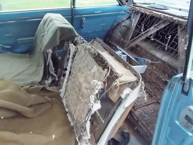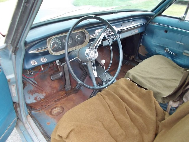 INTERIOR WAS STRIPPED DOWN BY LAST OWNER FOR IT HAD MICE MAKING IT A HOME. YOU CAN BUY NEW SEAT CUSHIONS AND ABOUT EVERTHING FOR THESE CARS. BUT DONT THROW AWAY THAT CENTER MOLDING. THEY DONT MAKE IT. RESTORATION WORLD IS A CHEAP SOURCE FOR NOVA PARTS. CHECKEM OUT ONLINE.