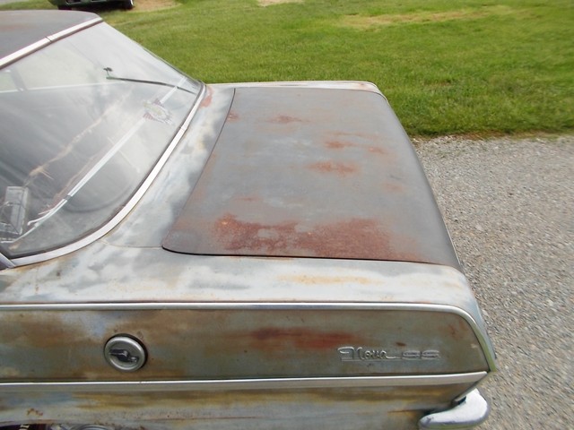 AS YOU CAN SEE MOST 99% OF CAR IS HERE. SINCE FENDERS AND HOOD WERE JUST BOLTED ON QUICKLY THEY ARE NOT LINED UP PERFECT. IT ONLY HAS A FEW MINOR DINGS. VERY STRAIGHT FOR SETTING OUT SO LONG. IT DOES HAVE A INDIANA TITLE WITH NO MILES ON IT BUT I WOULD SAY IT CAME OUT OF THE SOUTH. THESE CARS RUST ALOT HERE AND AS I DESCRIBED ABOVE JUST NOT MUCH TO REPAIR. NEVER BEEN WRECKED EITHER.