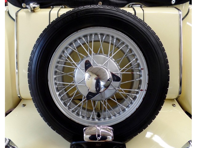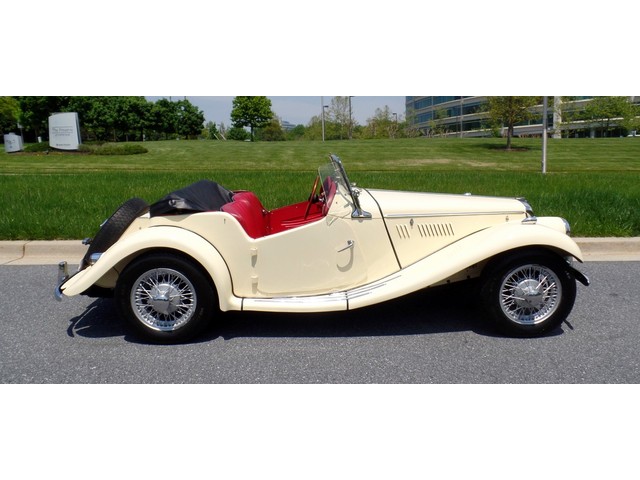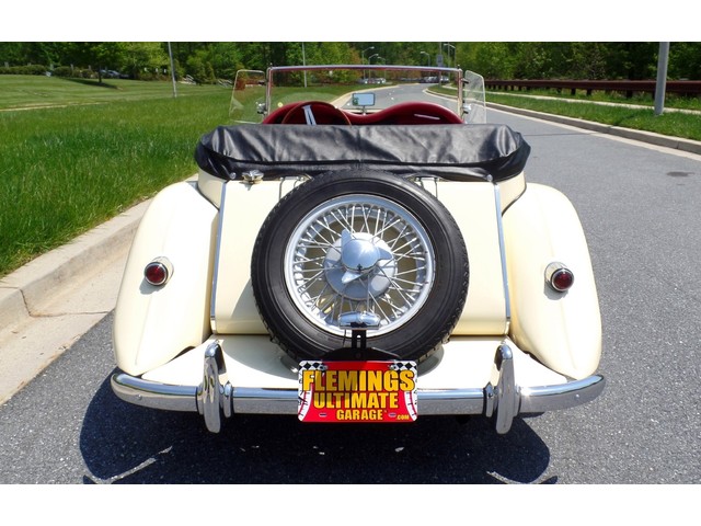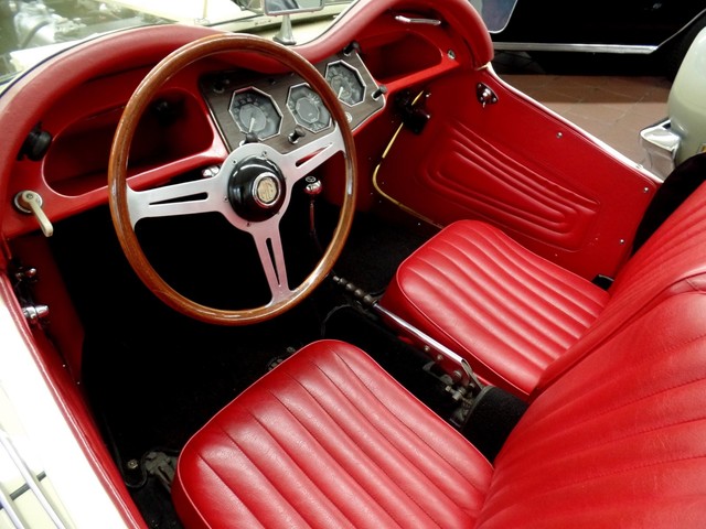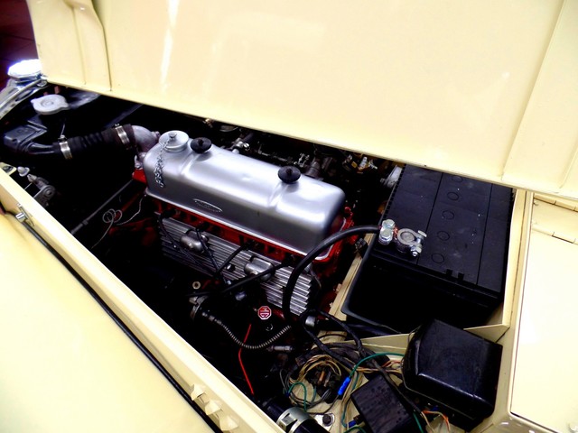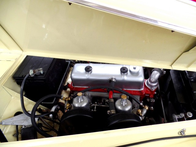 Stunning nut & bolt restoration, original 1.3 Liter 4cylinder with correct twin SU side draft carbs, original 4 speed manual gearbox. Spectacular mirror finish Vintage Ivory paint, great looking red bucket seat interior with 3 spoke wood and aluminum steering wheel. Fully restored dash with original Jaeger gauges. New black convertible top with side screens and matching boot, original factory knock off wire wheels with matching rear mounted spare. Full independent front suspwnsion with great handling rack & pinion steering. original brass top radiator, original Lucas generator, factory under bonnet tool box with many original tools. Great looking chrome and polished stainless brightwork. Beautifully done and highly original! Show or drive this classic British roadster.