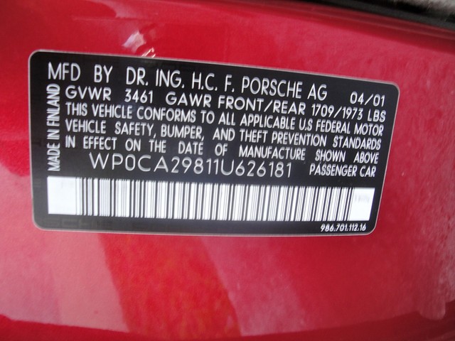 ***FREE CARFAX UPON REQUEST*** THIS IS A SUPER NICE 2001 PORSCHE BOXSTER CONVERTIBLE WITH ONLY 39,108 ORIGINAL ONE OWNER MILES. THIS WAS A FLORIDA OWNED VEHICLE. IT IS A NON SMOKER. IT IS IN GORGEOUS CONDITION. THE EXTERIOR LOOKS GREAT. THERE IS A SCRATCH AND CHIP ON THE PASSENGER DOOR. (PIC) AND A LIGHT BRUSH ON THE REAR BUMPER. OVERALL THE PAINT IS BRIGHT AND SHINY AND THE LOOK IS EXCELLENT. THE INTERIOR IS CLEAN AND SHARP AND REALLY REPRESENTS A LOW MILEAGE VEHICLE. MECHANICALLY IT IS TIGHT AND STRONG AND LOTS OF FUN TO DRIVE. EVERYTHING WORKS AS IT SHOULD. THIS WOULD BE A GREAT CAR FOR A SNOWBIRD RESIDENT. CALL ME FOR MOR DETAILS.