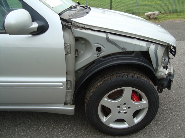 As seen in the pictures this nice looking 2000 Mercedes ML55 AMG has very light front and rear damage. This vehicle was directly purchased from insurance auctions for resale in the condition you see it on the pics. No middle man involved. We have the salvage certificate of title (no-liens) at hand and ready to transfer to the new owner. Such vehicles can be legally returned back to the roads after repairs and your state motor vehicles inspection. Damaged areas are clearly shown in the pictures below.  As seen in the pictures the front has no major structural damage. Looks like it was a light bump to the right fender/headlight area. Fender apron is clean and undamaged (see pics) Damaged front bumper cover and fender is available (see pics below). Both parts may be fixable at the hands of a skilled body man. Front frame rails are straight and cooling components are fully in tact with no visible leaks. Car was ran for minutes with no overheat and no leaks observed. Right rear has similar light damage. Engine compartment is clean and engine running great! All glass good. Rear view mirrow needs to be remounted (see pics). The great news is that the car starts, engine runs excellent goes into gear and we are able to drive it around within our lot. No damage to the engine or tranny! All airbags are good. The interior is clean and in good condition with black leather, factory navitagion (needs security code to activate), CD, dual pwr heated seats, power sunroof and more. Overall should be an easy fixer with minimal parts and not much of real body work. See below photos for overall condition and please ask questions before making a purchase and not after.
