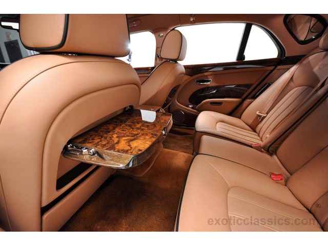 2011 Bentley MulsanneExotic Classics is proud to present a 2011 Bentley Mulsanne finished in Beluga with Autumn interior. With only 15,100 carefully driven miles, this Bentley will surely make its new owner proud. It has been well taken care of and has had all recommended services completed at the Bentley dealership. This Bentley is loaded with $43,000 in options has a window sticker of $334,000.The Mulsanne, Bentley’s flagship sedan, is unparalleled in luxury, comfort and elegance. Under the hood is a 6.75 liter twin turbocharged engine which produces 506 hp and a whopping 752 lb-ft of torque connected to an eight speed transmission. Luxury Standard features include navigation system, Bluetooth, voice control, SAT radio, 12 way adjustable front seats and 8 way rear seats, leather and wood veneer throughout the interior, TPMS, park distance control and much more.Paid options include the Premiere Specification Package ($20,000), which includes 21” wheels, bright stainless steel matrix grill & wing vents, jewel fuel filler cap, stainless door pillar finisher, shade band to tinted windscreen, veneered picnic tables, I-Pod drawer, seat ventilation & massage to front and rear seats, rear view camera, ambient interior mood lighting and flying “B” radiator mascot. Additional options include Naim Premium audio system ($7,400), Adaptive Cruise Control System ($3,600), Wood & Hide Steering Wheel ($2,400), Seat Piping ($2,200), Veneer Door Panels ($1,500), Picture Frame Inlay to Waistrails ($1,400), Deep pile Wilton Carpet Mats to front & rear ($1,300), Six Disc DVD Player ($1,000), Wooden Gear Lever ($650), Embroided Bentley Emblems to all Seats ($630) and Rear Quarter Companion Mirrors with Veneer Surround ($520). Come see this beautiful 2011 Bentley Mulsanne at the Exotic Classics showroom today.
