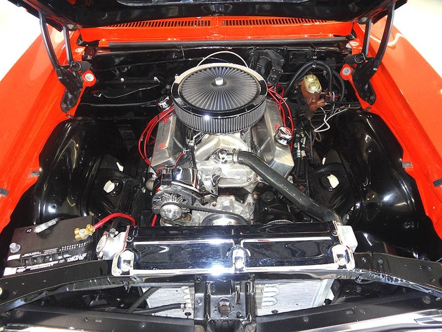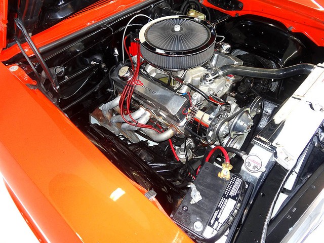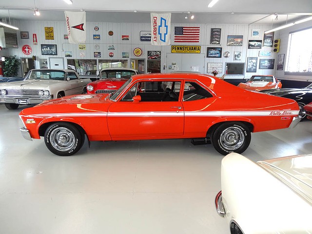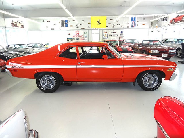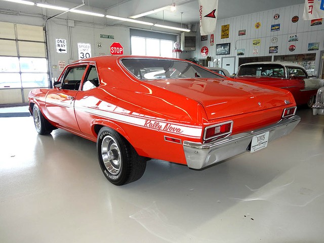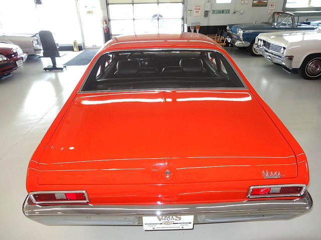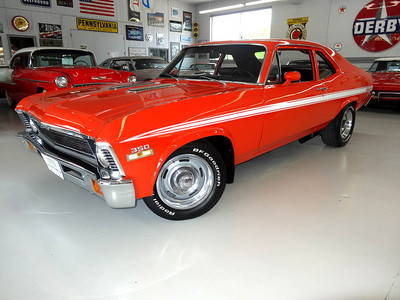 1972 Chevrolet Nova, fully restored in 2003, Hugger Orange Exterior with white Rally stripes and black cloth/vinyl interior. Features rebuilt 350 V8 engine (in 2006) bored out .30 over, Dart Pro 1 aluminum heads and intake. Turbo 350 tranny (rebuilt 2002) with heavy duty shift kit. The engine is equipped with a Holly 670 Street Avenger carburetor and MSD ignition. Power steering, 3 core aluminum radiator with electric fan, Aluminum pulleys, and valve covers. Newer traction bars, dual exhaust, ceramic coated headers, 10 bolt posi rear end with 3.42 gears. Interior features: All new upholstery by CJ's upholstery in Rock Island Illinois (in 2005) Kenwood stereo CD player and Sirius satellite radio, Auto Meter gauges, seat belts, fire extinguisher and rubber floor mats. Comes with spare tire and jack, inside trunk compartment has some scratched in the speckled paint from car show chairs being taken in and out ) New in 2006 15" wheels installed with brand-new BFG's radial tires. Like new chrome and stainless steel, beautiful fit and finish very clean throughout and runs like a muscle car should....STRONG! Approximately 2674 miles since rebuilt.