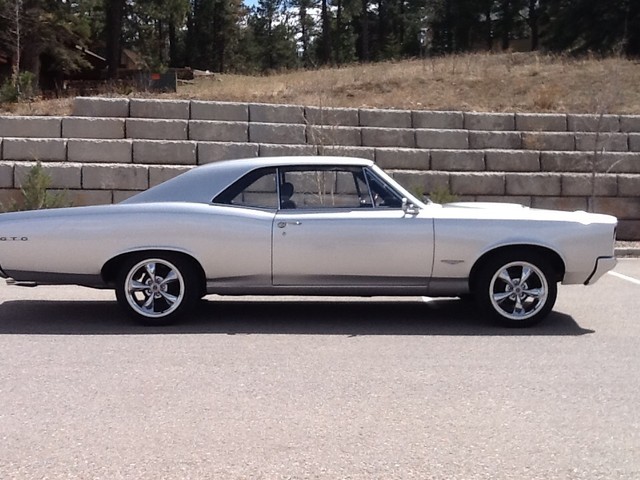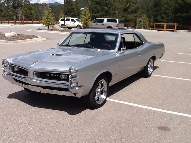 Original 389 with Edelbrock intake and carb . 4 speed Hurst, Body off Resto Mod by The Old Car Garage in Albuquerque NM about Five years ago. Approximately 1,000 miles on the car since work has been completed. The car is always garaged and covered. Every nut and bolt has been touched on this beautiful 1966 GTO Resto Mod.17'x8' American Racing Torque M Wheels W/ 245/45 17 Eagle GT tires. All new suspension W/ Hotchkis anti sway bars and end links, Global West /PST Tubular rear control arms. All new springs and shocks. Motor and transmission mounts and body bushings. Fuel Tank, straps and hardware. Rear end with positraction. Brakes, all chrome redone. Complete new interior from carpet to headliner. Procar seats. Beautiful wood steering wheel. Dakota digital dash. Stereo,Painless front wiring harness. and much more. The fit and finish on this car is second to none. All receipts and build pictures will be provided to the new owner along with any other original parts from the car.