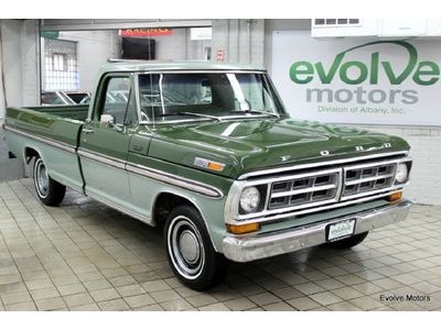 Presented in the correct, original two tone colors of Mallard Green over Boxwood Green, this 1971 Ford Ranger XLT is an absolute time capsule. Purchased new in '71 in Texas, this truck stayed there for most of it's life before being transferred to Michigan, where it lived the summer home life. Having been refinished in the original color scheme, this truck shows almost as new. All the panels are straight with good gaps and the bumpers and trim show a little patina. The bed is in great shape only showing a little surface rust where the floor meets the side panels. The interior is mostly original with the exception of the seat, which was just refinished using the original cloth, but adding green leather in place of the old vinyl.
