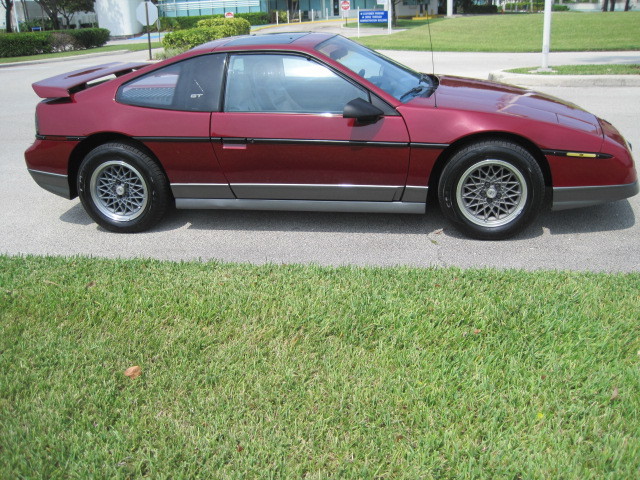 WE ARE EXCITED TO OFFER FOR AUCTION, THIS SUPERB 1987 PONTIAC FIERO G.T. THIS WAS THE PENULTIMATE YEAR OF PRODUCTION FOR THE FIERO WITH ONLY 15,880 G.T.'S BEING PRODUCED. THIS PARTICULAR EXAMPLE IS A STUNNING UNRESRORED ORIGINAL CAR WITH ONLY 36K ORIGINAL MILES. THE EXTERIOR BODY IS VERY STRAIGHT WITH NO DAMAGE. ALL BODY PANELS ARE ORIGINAL WITH THE FACTORY STICKERS. THE PAINT FINISH IS VERY GOOD WITH A HIGH GLOSS AND NO FADING. THE INTERIOR IS ALSO ORIGINAL SHOWING ONLY MINIMAL WEAR. THE DASHBOARD AND FIXTURES ALL SHOW WELL. THE INSTRUMENTATION ALL WORKS CORRECTLY AS WELL AS THE POWER WINDOWS AND MIRRORS. THE FACTORY RADIO EVEN STILL WORKS CORRECTLY. THE CAR HAS A FACTORY 'POP' UP SUNROOF. MECHANICALY THE CAR RUNS AND DRIVES AS NEW WITH A FEEL ONLY A LOW MILEAGE EXAMPLE CAN PROVIDE. THE SUSPENSION IS RATTLE AND CLUNK FREE WITH TIGHT RESPONSIVE STEERING WITH NO PLAY OR SHIMMIES. THE 2.8 LITRE V6 MOTOR IS VERY SMOOTH AND RESPONSIVE WITH A NICE SPORTY EXHAUST NOTE! THE FIVE SPEED GERTRAG (MUNCIE 282) TRANSMISSION SHIFTS EASILY WITH NO SYNCRO ISSUES, THE CLUTCH WORKS PERFECTLY WITH AN EASY  MODULATED FEEL. (NOT STIFF) THE DRIVING EXPERIENCE IS VERY REWARDING AND YOU JUST WAN'T TO GO DRIVE THE CAR WITH NO REAL DESTINATION IN MIND JUST FOR FUN. REALLY ONE OF THE BEST FIERO'S I HAVE EVER DRIVEN. THESE CARS I FEEL WERE UNDERATED WHEN THEY WERE NEW AND WERE CRITICIZED BY PEOPLE THAT HAD NEVER DRIVEN OR OWNED ONE. TODAY I FEEL THE STYLING IS STILL VERY CONTEMPORARY WITH A TIMELESS GT SPORTS CAR APPEAL.